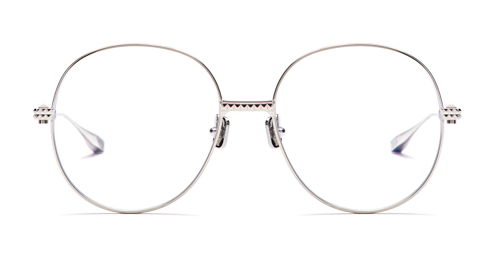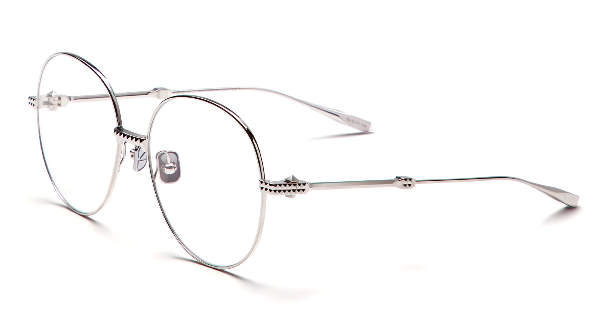 Valentino V-STUD-III - SILVER RX (VLX-136B-56) è un elegante occhiale di genere neutro dalla forma ovale oversize. Presentano una struttura in titanio giapponese color argento, naselli custom in titanio, borchie 3D Valentino su ponte, sulle aste e sui terminali.