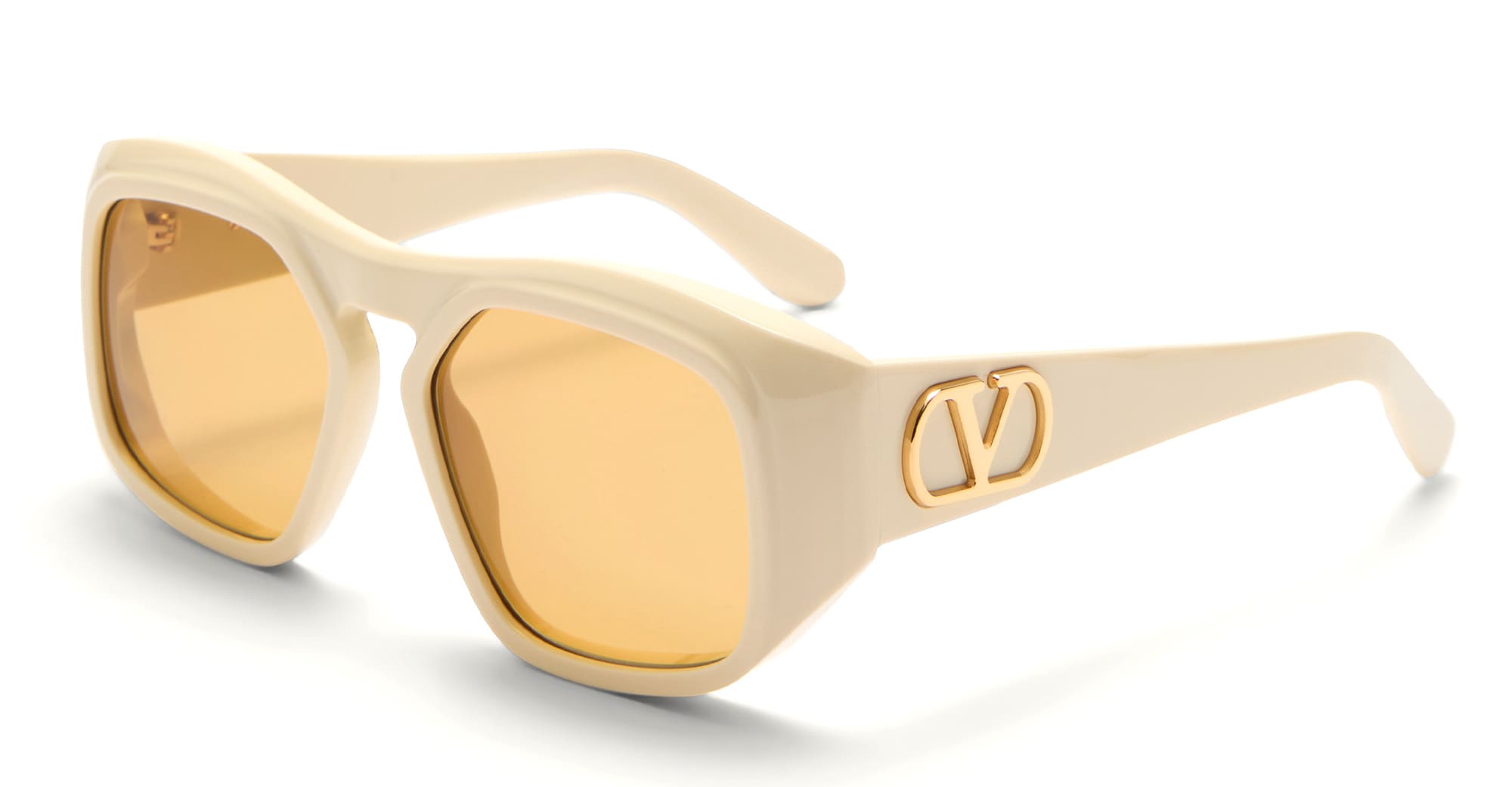 Valentino VLS-179C - IVORY (VLS-179C-55) are elegant big squared sunglasses made in Japan. They feature sculpted ivory acetate frame with thick brow bar, acetate temples with Vlogo, and yellow lens with 100% UV protection.