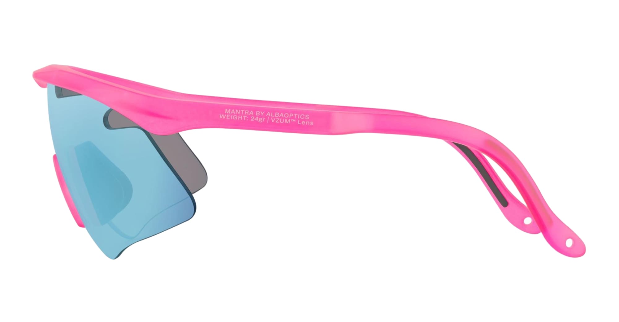 Alba Optics MANTRA - FUCSIA / VZUM CIELO (8050054514574) sono occhiali da sole a mascherina prodotti in Italia. Sono caratterizzati da una montatura monopezzo in Tr90 leggera di 24 g, lenti intercambiabili, aste ergonomiche e lenti VZUM specchiate con rivestimento schermante e protezione UV al 100%. Possono essere posizionati sul casco, sulla testa o appesi al collo.