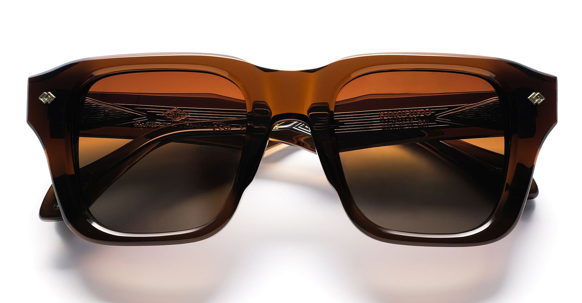 Daizo KIMIHIKO - TRANSLUCENT BROWN / BROWN GRADIENT LENS (A-S003-TB1-BG01) are 1970s-inspired squared sunglasses, part of the Daizo custom-batch eyewear collection and handcrafted in Japan. They feature translucent brown Italian acetate frame with beveled edging for three-dimensional depth, unique hinge system and detailed with custom two tone rivets, signature laminated wire core and embedded DAIZO diamond logo at temple tips and brown gradient lens with 100% UV protection. This frame is ergonomically designed to give ultimate wearing comfort.