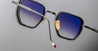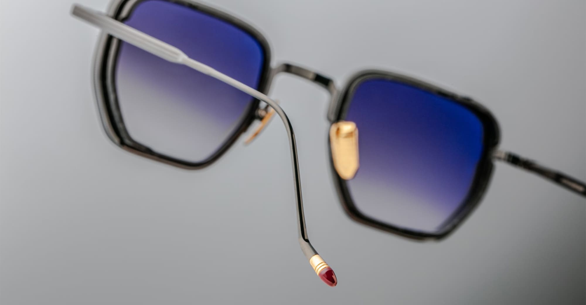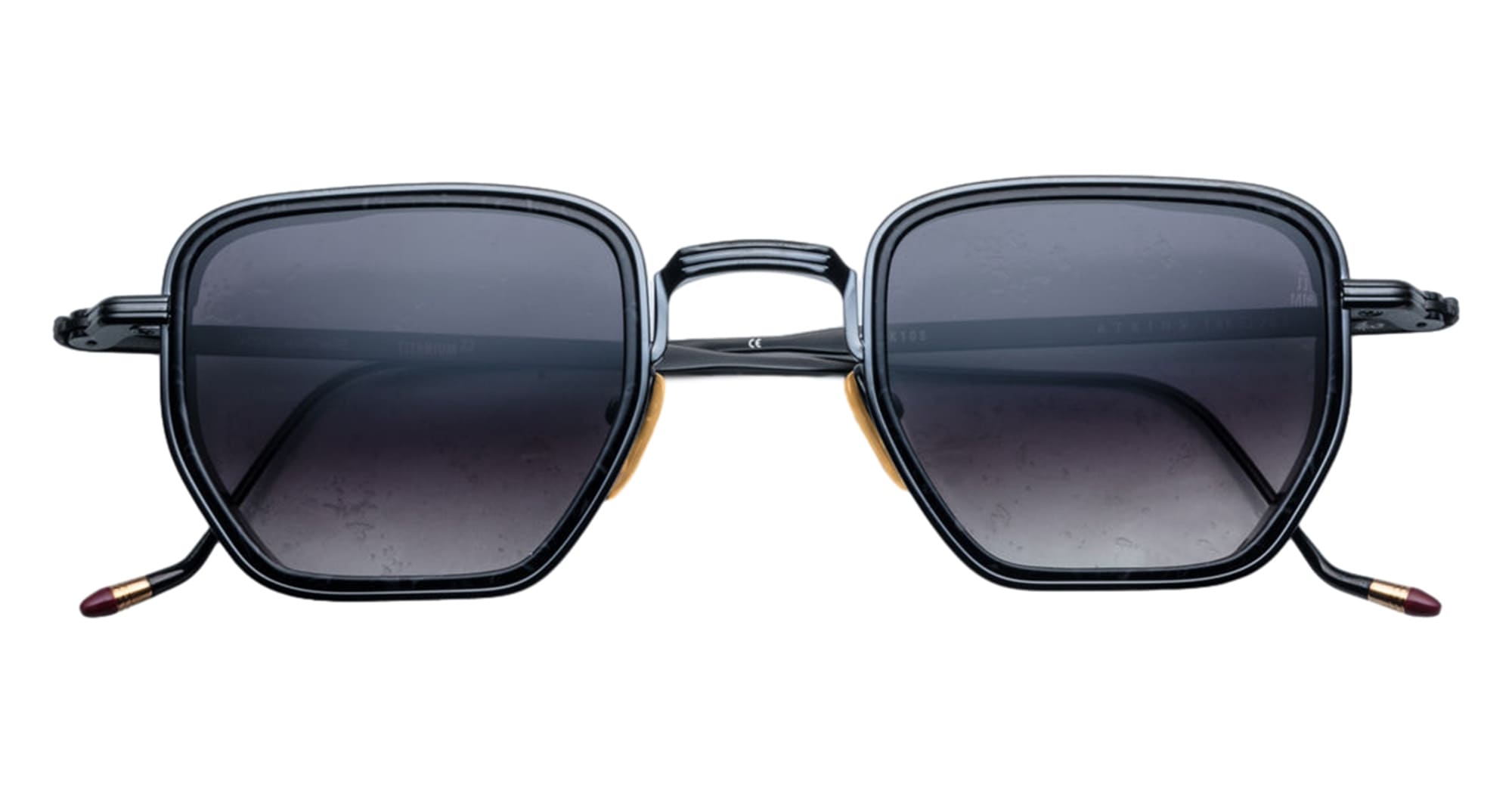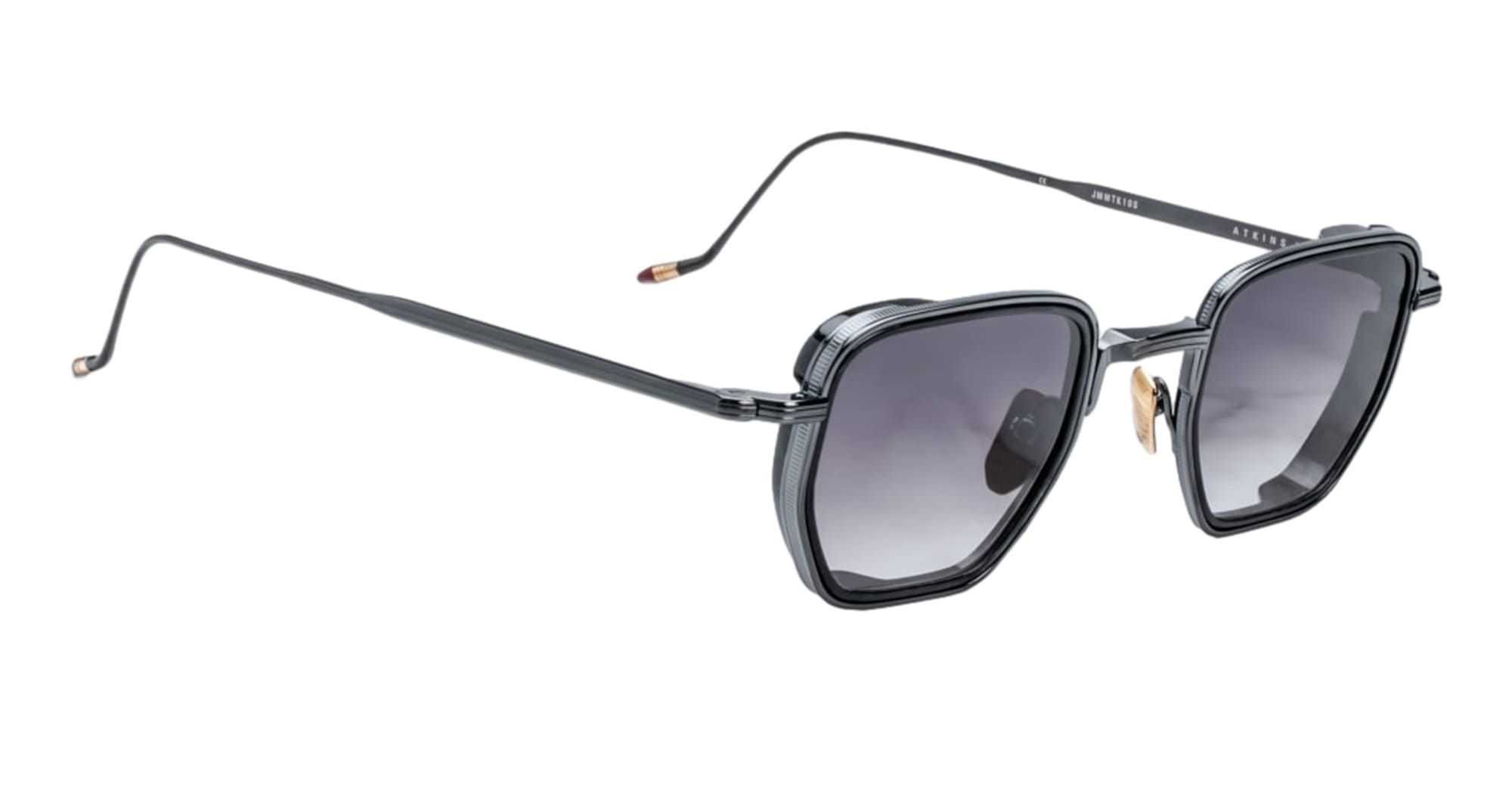 Jacques Marie Mage ATKINS - SLATE (JMMTK-10S) sono occhiali da sole squadrati con angoli morbidi, parte della serie Titanium di JMM. Sono caratterizzati da titanio nero 100% beta con inserti in acetato nero ardesia da 10 mm, cerniera monoblocco, naselli personalizzati, aste in titanio con punte epossidiche bordeaux, lenti a mezzaluna sfumate a 2 basi con trattamento antiriflesso posteriore e protezione UV al 100%.