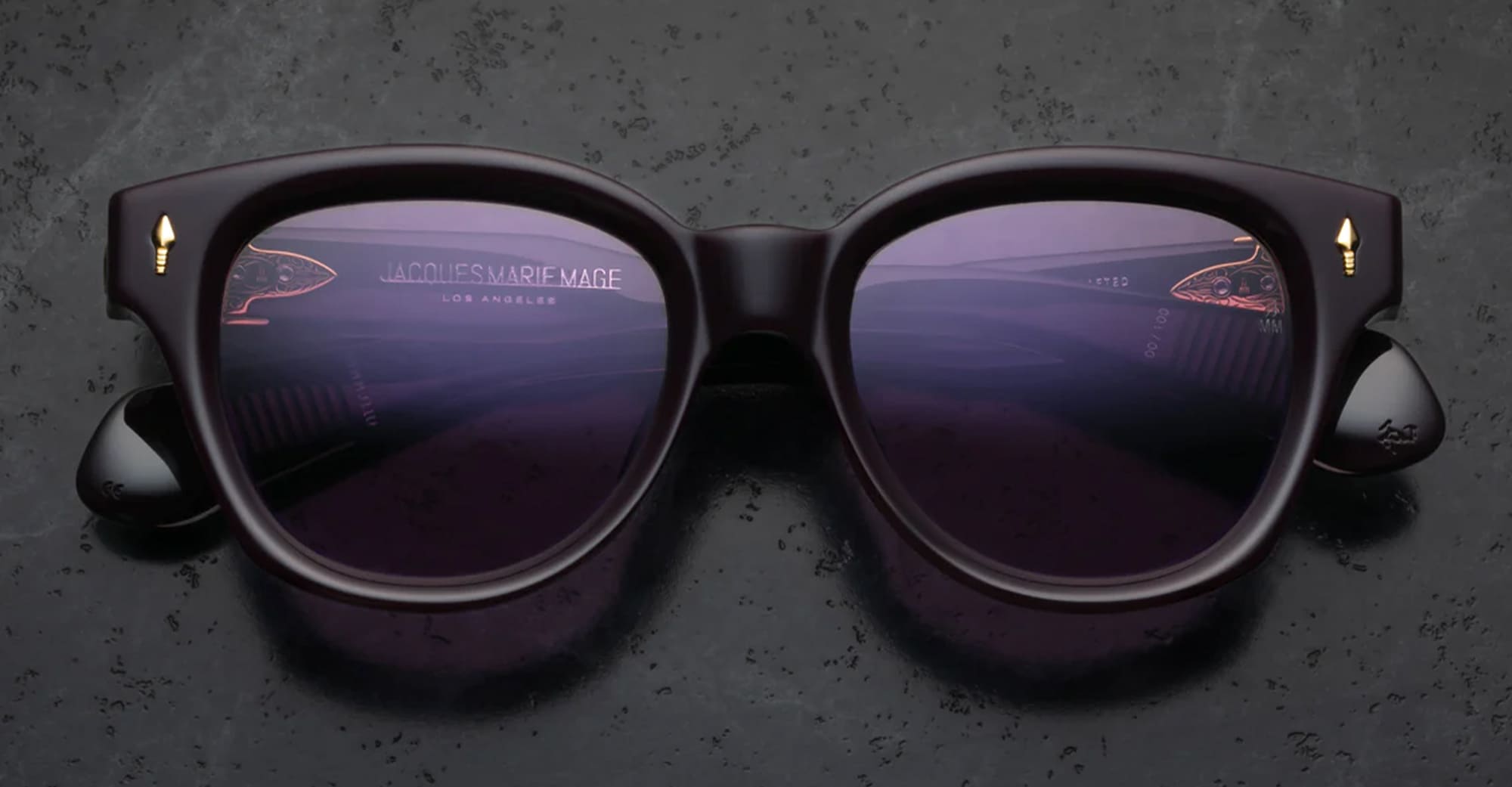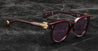 Jacques Marie Mage LAST FRONTIER IV - MOJAVE - AUBERGINE (J-ESN-MJ-S8011U-OS) sono occhiali da sole oversize a forma di Wellington, parte dell'esclusiva collezione JMM Last Frotnier. Montatura viola da 10 mm acetato di cellulosa, aste in acetato doppio laminato personalizzate, perni frontali a punta di freccia in oro scuro, "damasco" in argento a vista anima, cerniera a 7 barilotti fissata con tensione in oro scuro, decorazione del cavallo selvaggio sulla punta delle aste in oro scuro con intarsio turchese, lente in vetro minerale a 4 basi viola con trattamento antiriflesso sul retro e protezione UV al 100%.