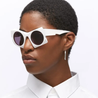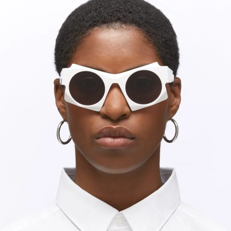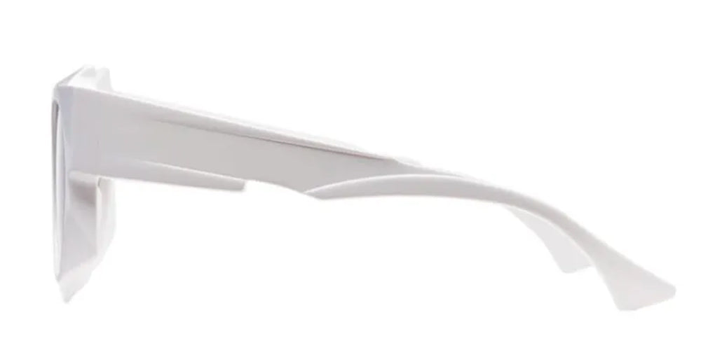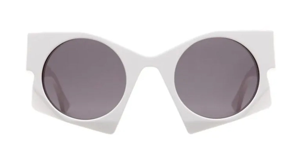 Kuboraum MASK U5 - CHALK WHITE (KRS0U5CK0000002Y) sono audaci occhiali da sole cat-eye squadrati con lenti tonde. Presentano montatura in acetato bianco Mazzucchelli, aste in acetato scluse e lenti grigie con protezione UV al 100%.