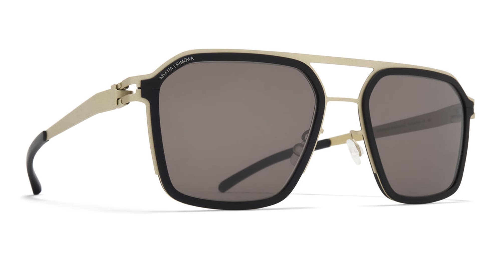 Mykita MR003 AL3 - TITAN / BLACK / BROWN SOLID LENS (10087677) are ultra-thin lightweight navigator sunglasses, part of the Mykita x Rimowa Colletion. They feature titanium and black stainless steel frame with aluminum eyerims, patented spiral hinge, anti-slip silicone temple tips and nose pads, brown premium lenses with 100% UV protection and an anti-reflective inner coating. Comes with co-branded eyewear case and cleaning cloth.