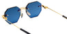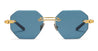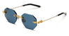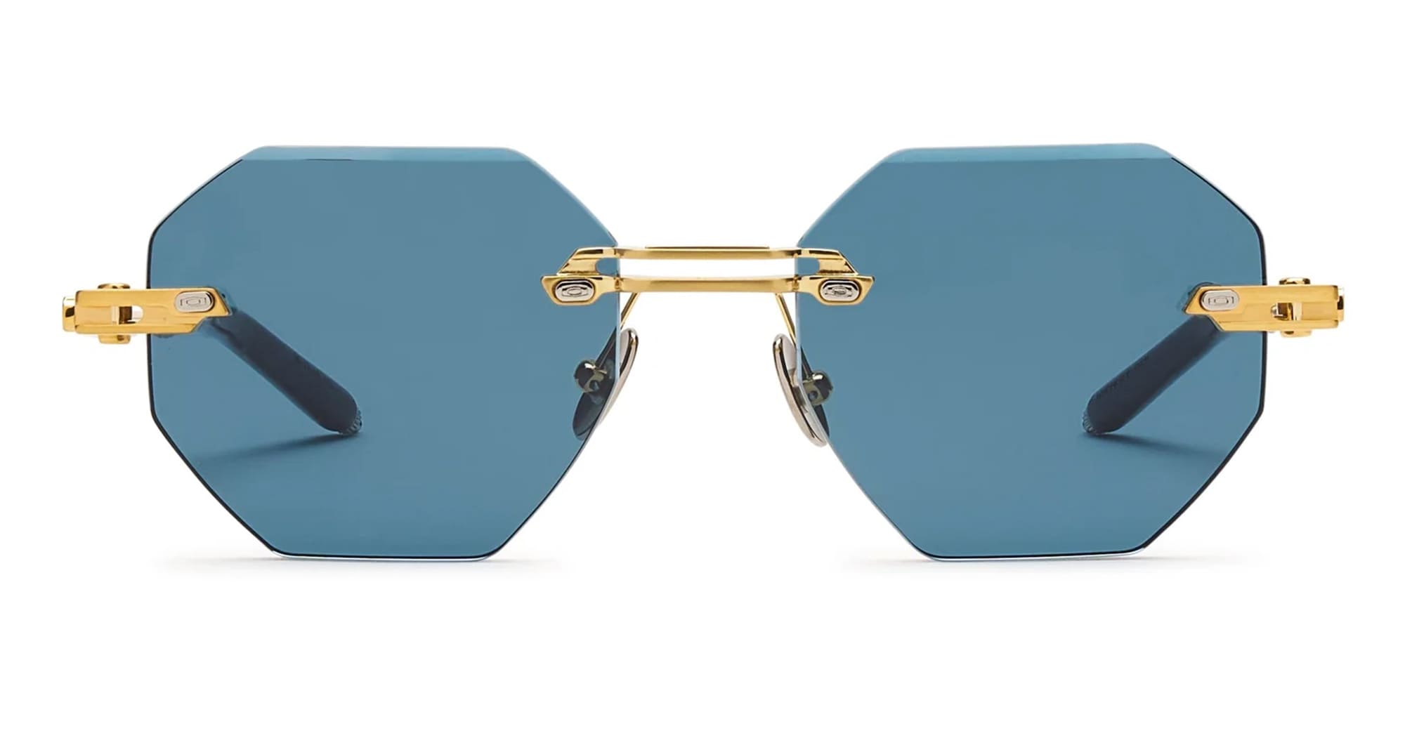 T HENRI TROFEO - L'OR BLEU (TML) are exclusive octagonal rimless sunglasses made in Japan, part of the exclusive T Henri Eyewear Collection. They feature a beta titanium contruction with modular vented components with 18k gold electroplating, flex temple system adorned with cellulose adjustable acetate temple tips and two-tone decors at each end, hand-finished monoblock hinge, and custom 4mm blue lens with anti-reflective, and scratch resistant coatings, and 100% UV protection.