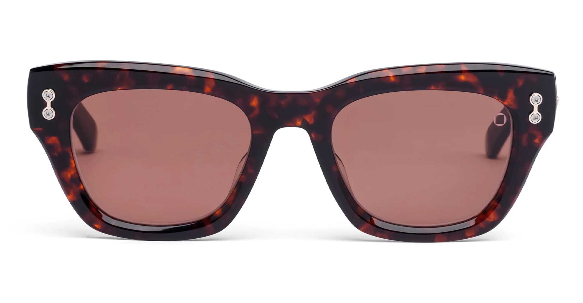 Akoni NEBULA - RED HAVANA / 12K GOLD (AKS-527C-50) are elegant '60s-inspired cat-eye sunglasses with a subtle feminine charm, part of the exclusive Akoni eyewear collection. They feature red havana acetate frame with 12k gold accent, sculpted acetate temples, threaded tube screw system, and brown lens with 100% UV protection.