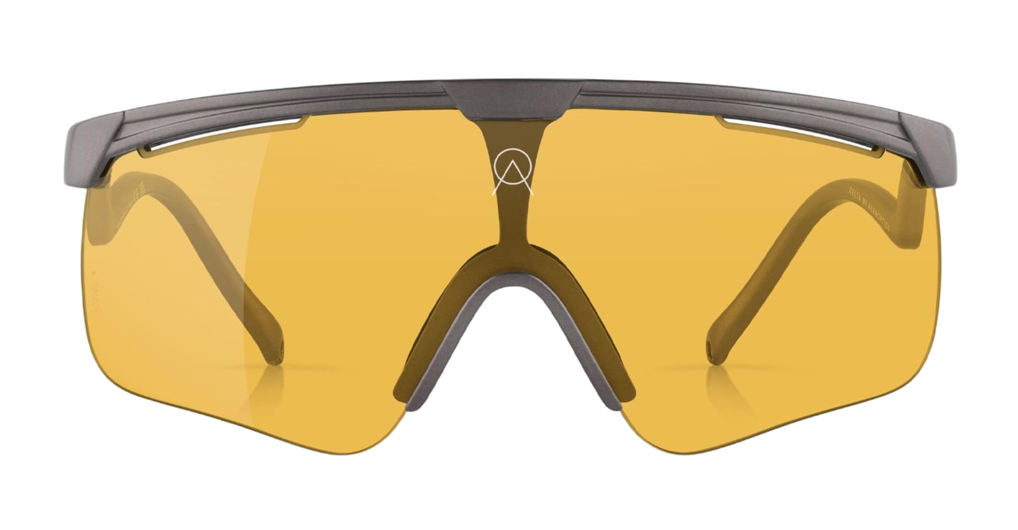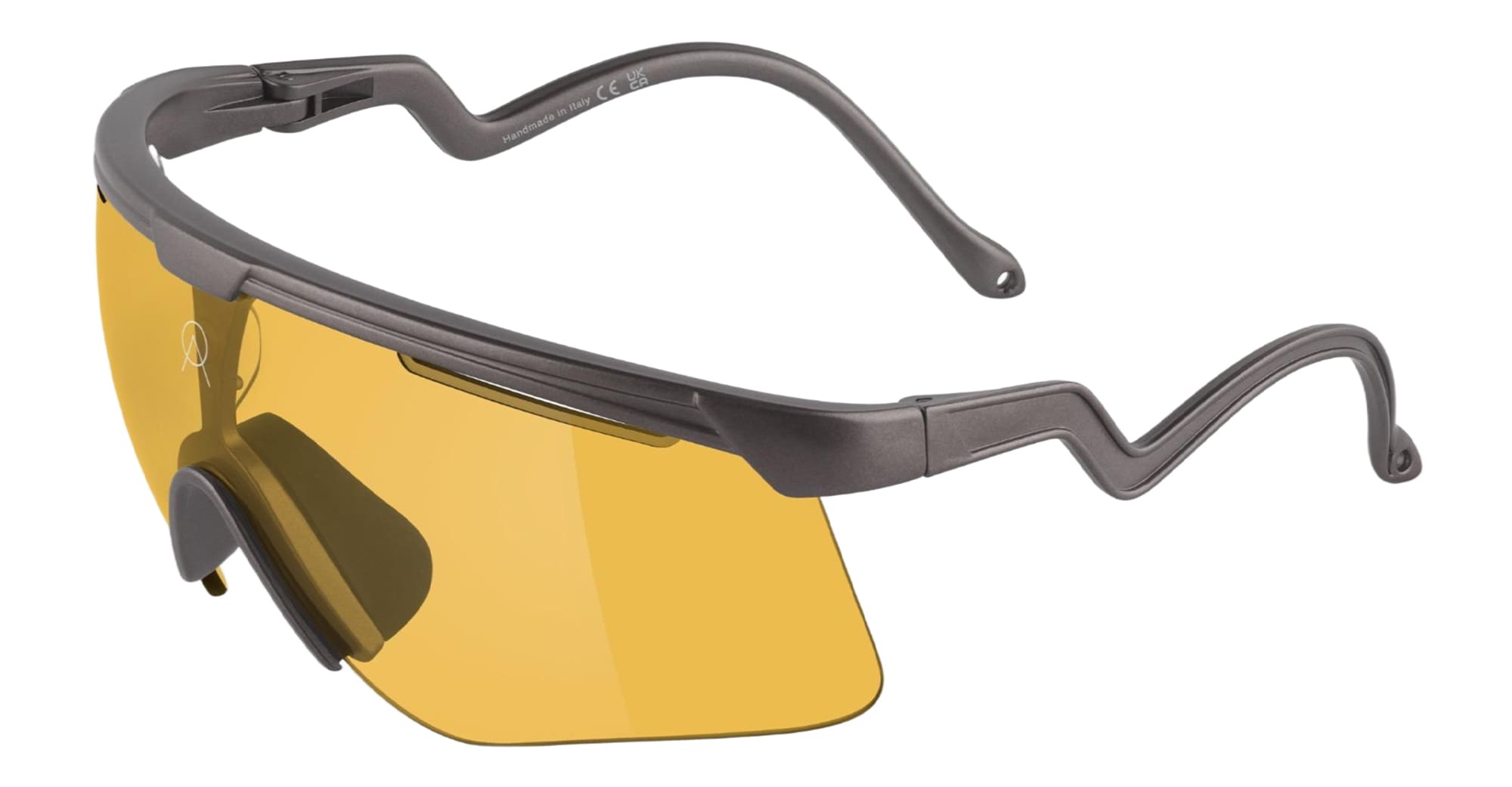 Alba Optics DELTA - GNMT / VZUM FLY (8050054512846) are sport sunglasses made in Italy with an '80s and '90s inspired style. They feature lightweight 26g Tr90 frame (nylon and carbon fiber polymer), internal ventilation to help prevent fog, eye protection, ergonomic temples, and interchangeable VZUM lens with shield coating and 100% UV protection. Compatible with Alba Optics' Optical Clip. They come with: a reflective black leash, a microfiber pouch and cloth. More info about Lens spec here.