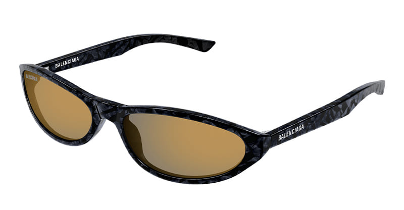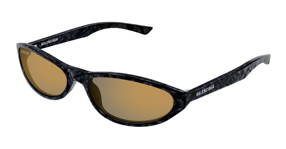 Balenciaga BB0007S-010 - BLACK (BB0007S-010) are modern oval sunglasses made in Italy. They feature black recycled acetate frame, Balenciaga logo on temples, gold mirror lens with 100% UV protection.