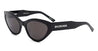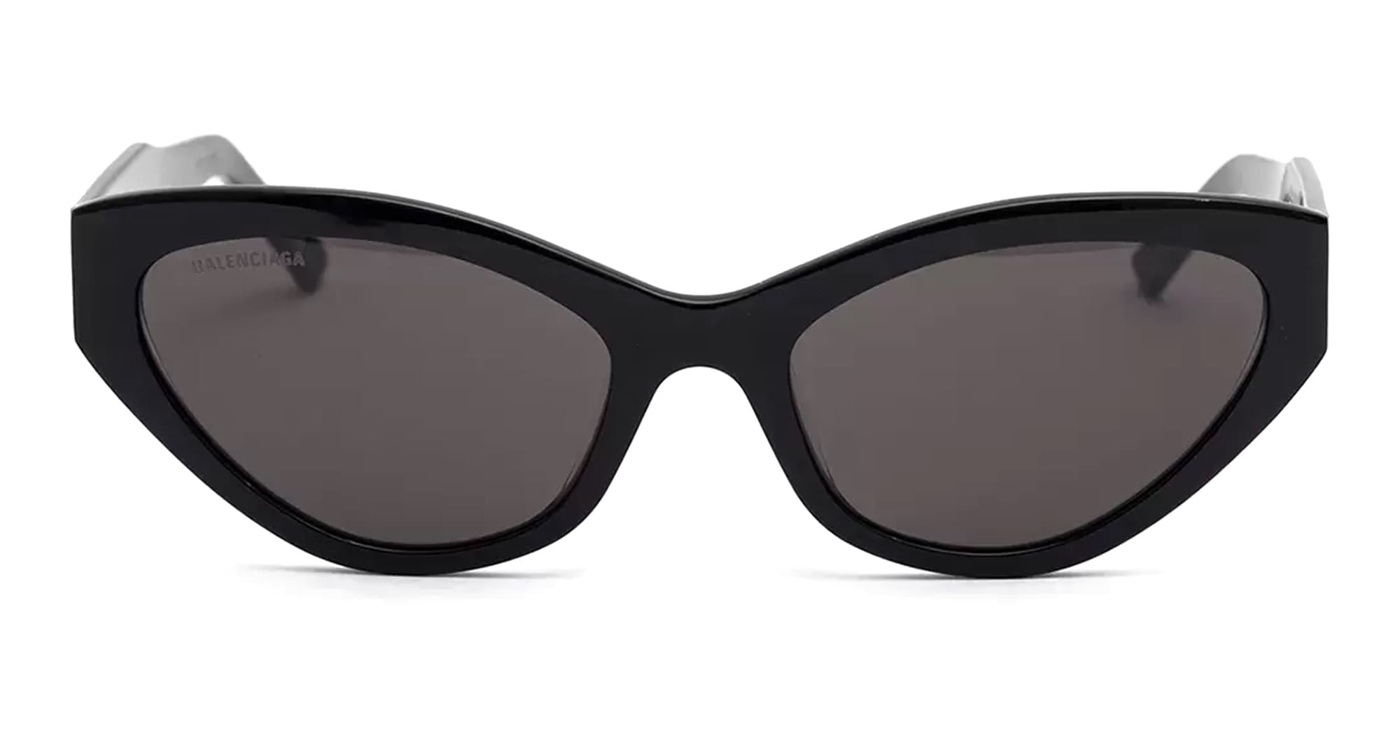 Balenciaga BB0306S-001 - BLACK (BB0306S-001) are cat-eye sunglasses made in Italy. They feature black acetate frame, lasered logo on right lens, contrast logo on temple, and grey CR39 lens with 100% UV protection.