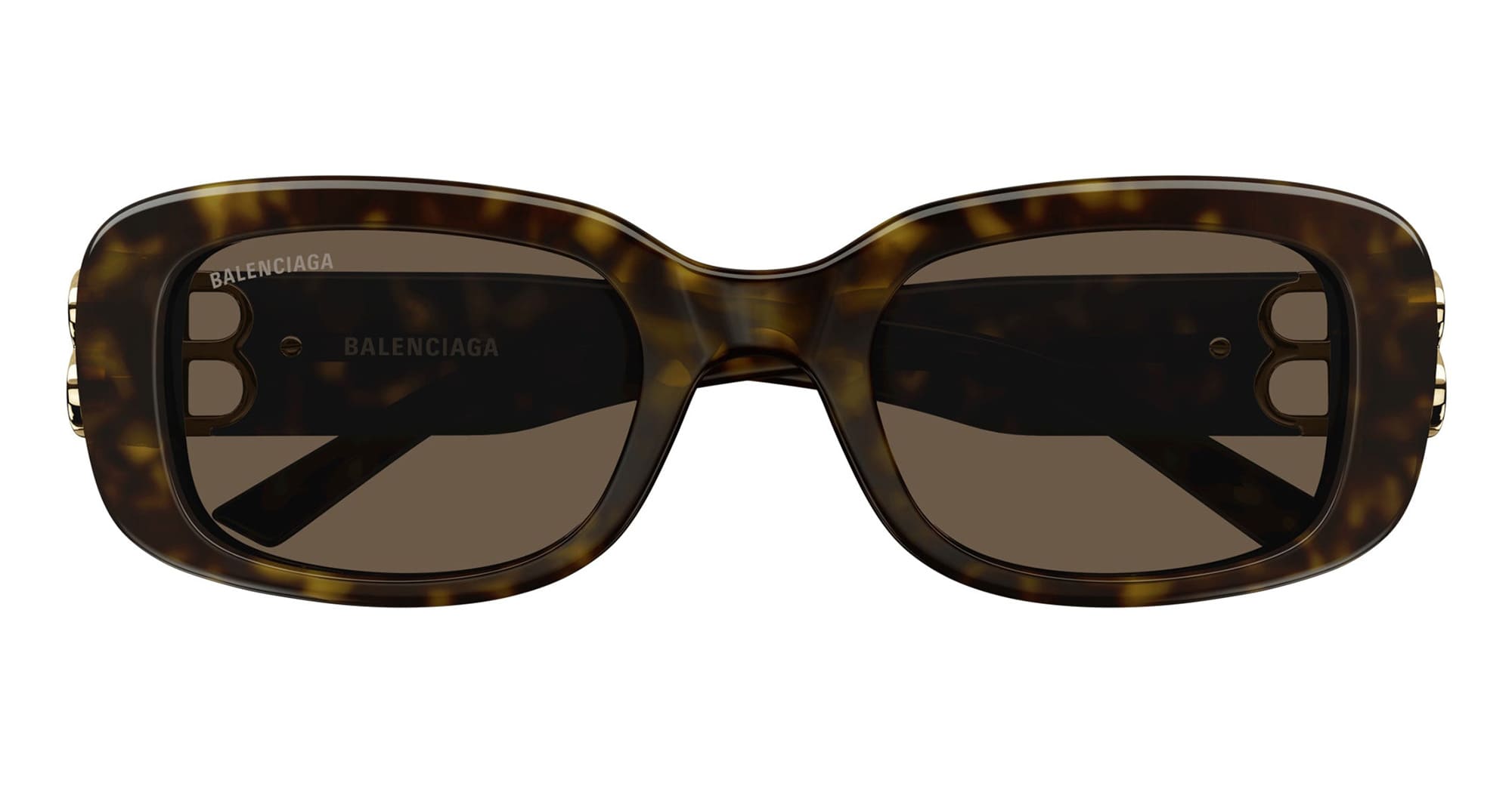 Balenciaga BB0310SK-002 - TORTOISE (BB0310SK-002) are rectangular sunglasses with soft angles, made in Italy. They feature black acetate frame, hidden hinge within the golden BB logo, and brown lens with 100% UV protection.