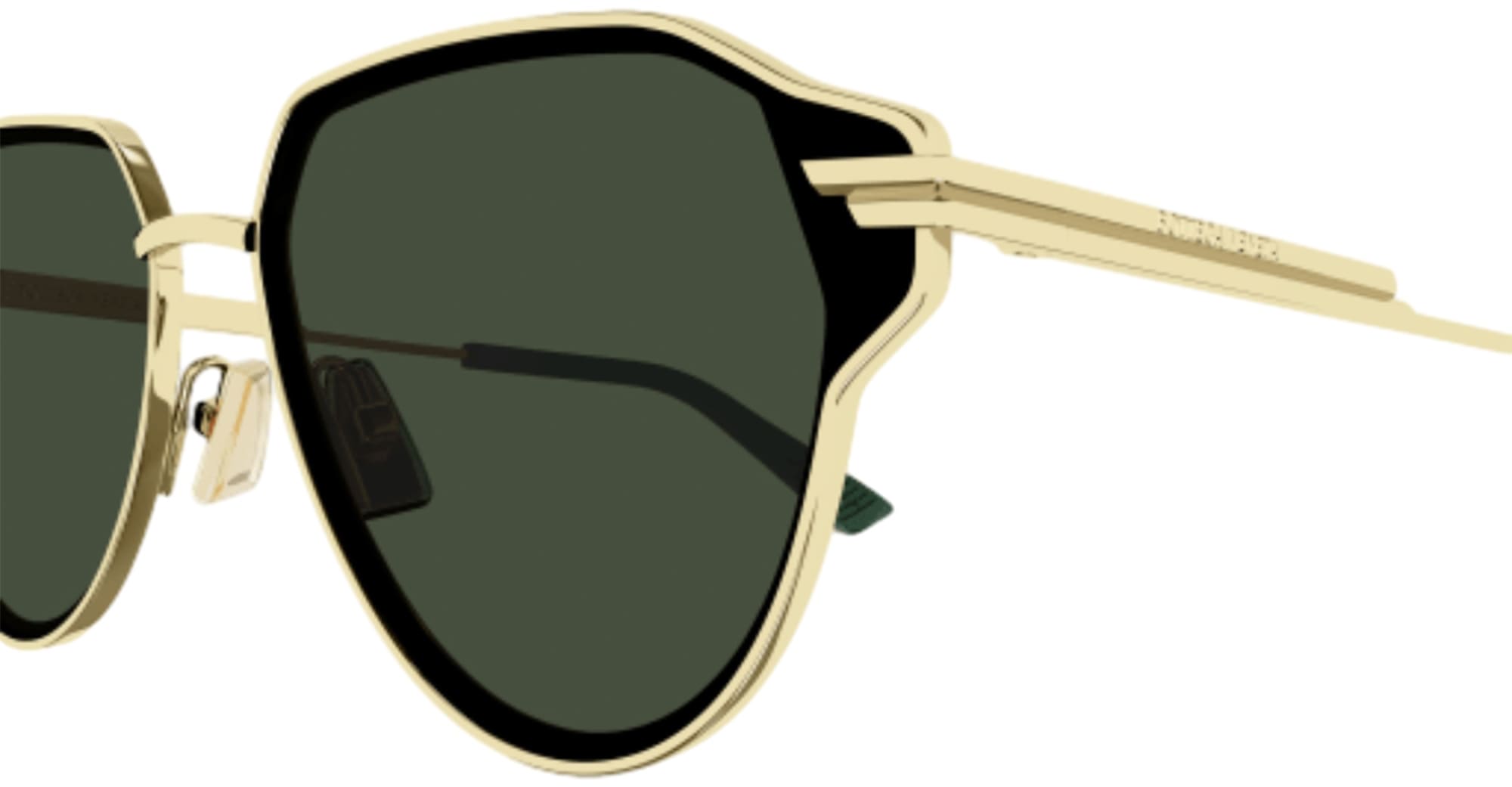 Bottega Veneta BV1271S-003 - GOLD (BV1271S-003) are metal aviator sunglasses made in Japan. They feature gold metal structure, recycled acetate temple tips, Bottega Veneta logo on temple, and green bio nylon lens with 100% UV protection.
