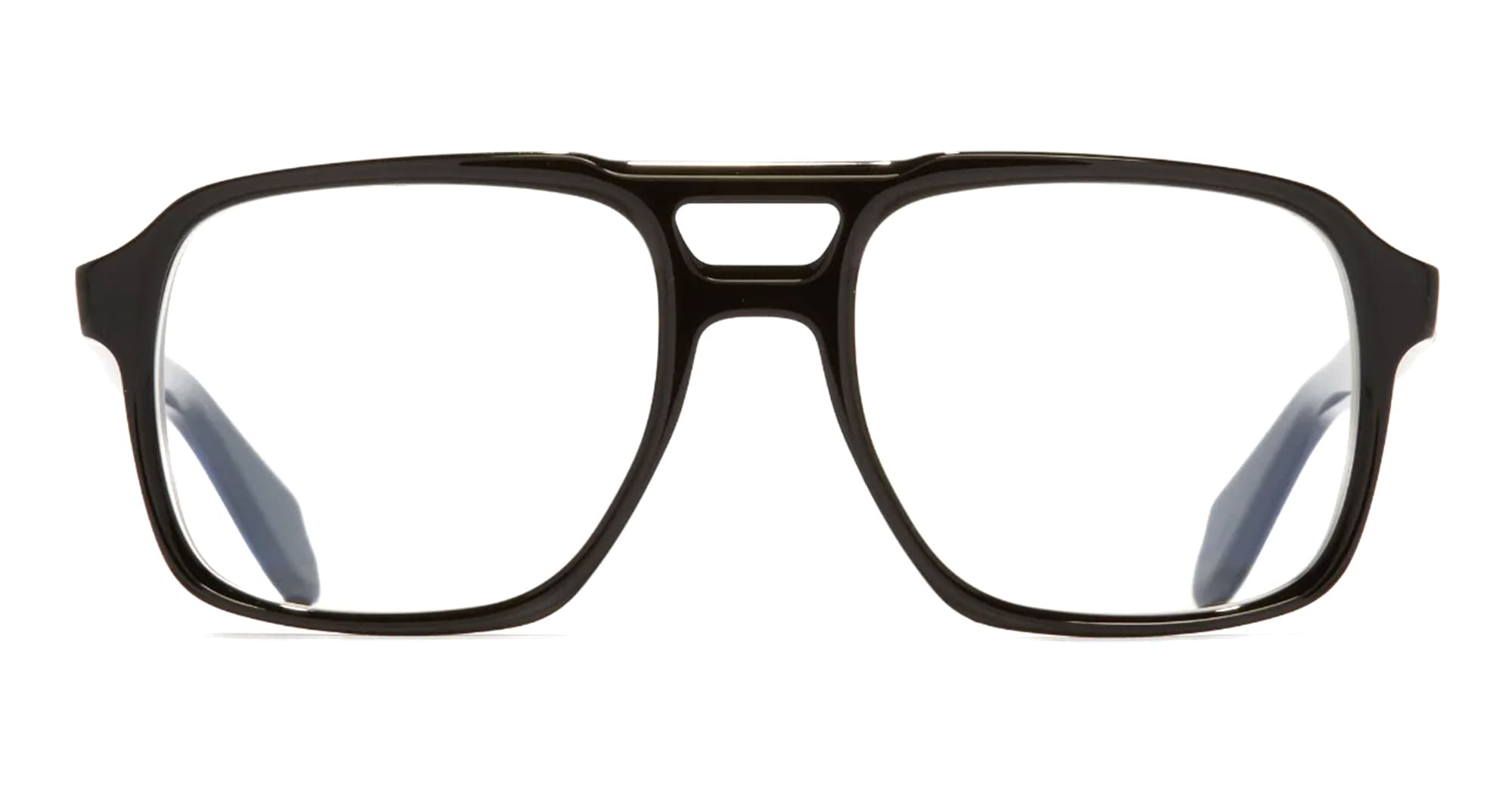 Cutler and Gross 1394 - BLACK RX (CGOP-1394-55-13) are '70s-inspired bold aviator eyeglasses. They feature black acetate frame, 5-barrel hinge, Compass Star temple pins, fretboard wirecore, and acetate temples. Handcrafted in Italy by expert craftspeople.
