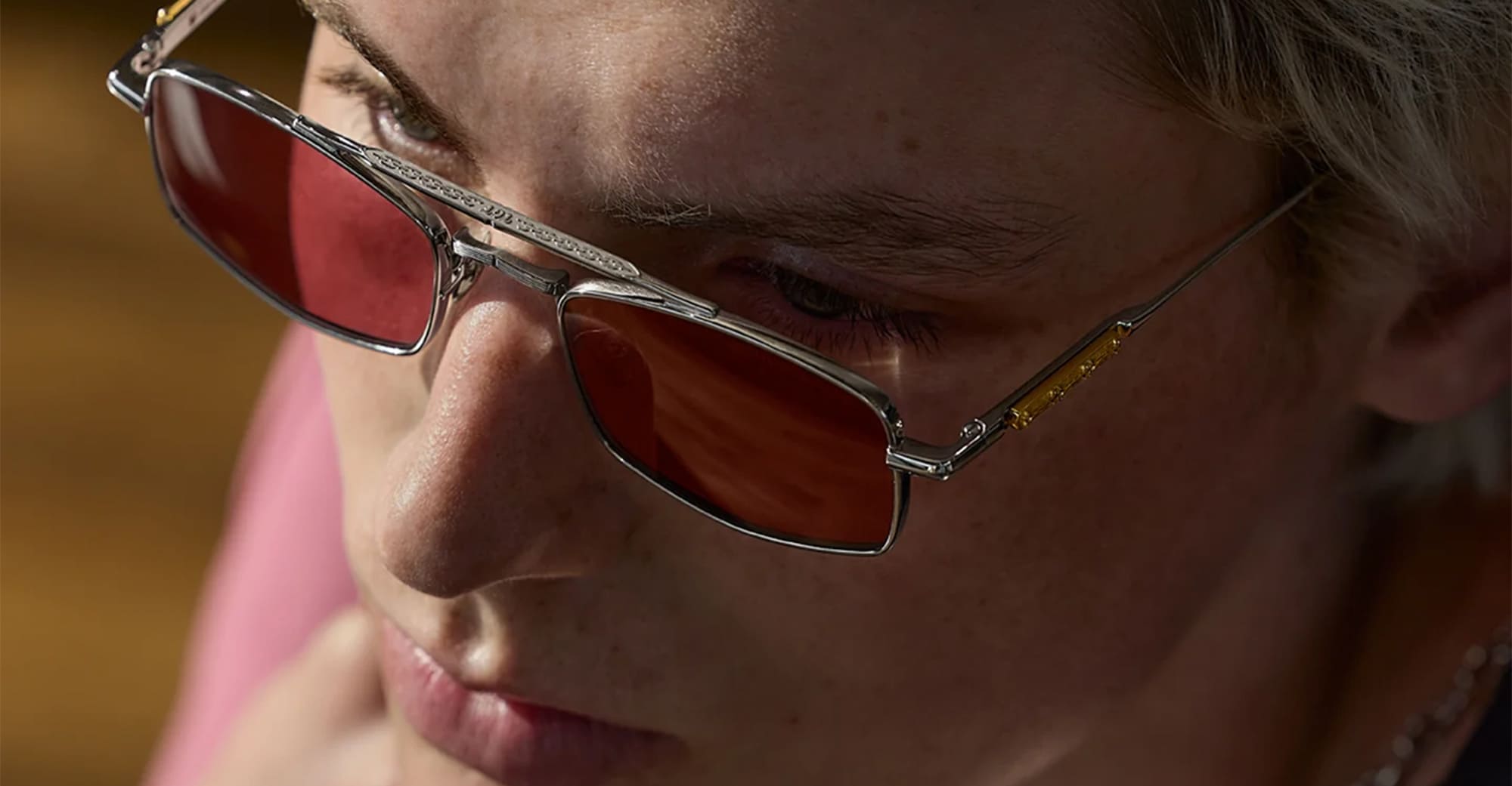 - Lens: burgundy