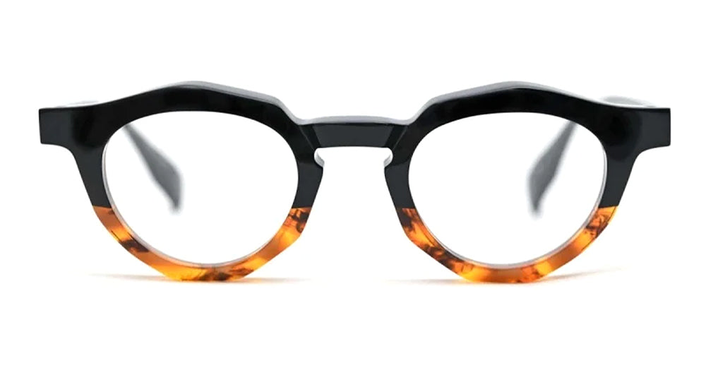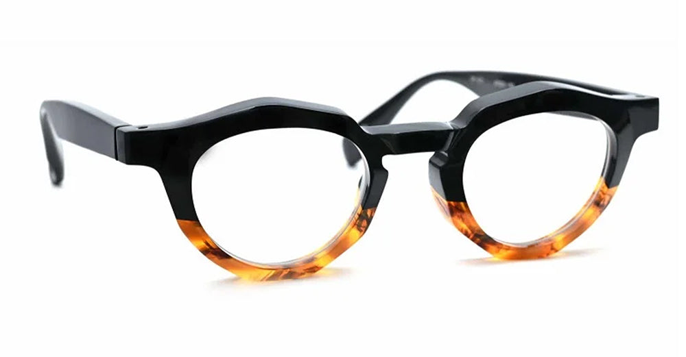Factory 900 RF 071 - BLACK / HAVANA RX (RF071COL.220) are edgy pantos eyeglasses with a rounded lens shape, made in Japan. They feature two-tone black and havana acetate frame, acetate temples, and integrated nose pads.