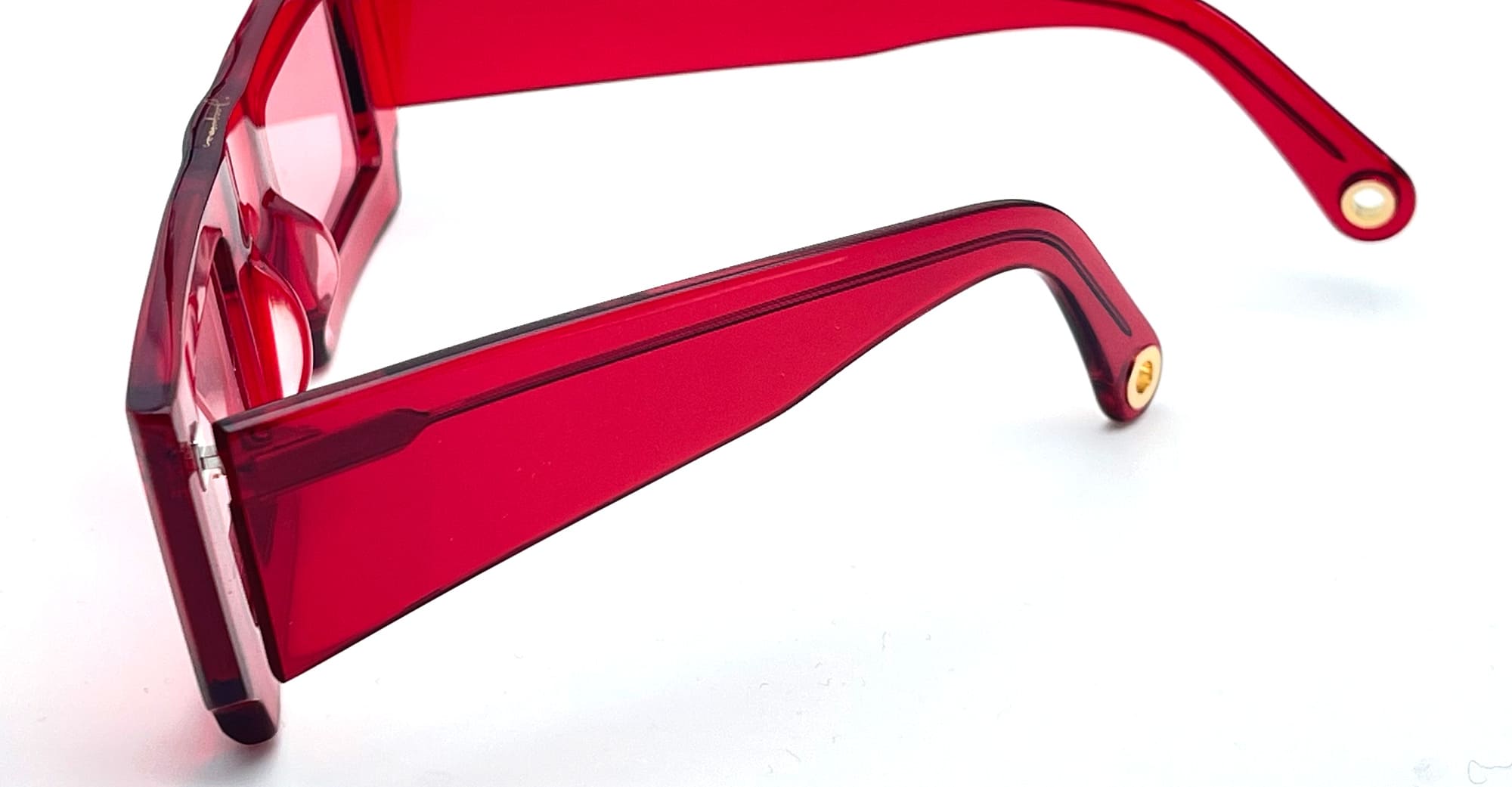 Jacquemus LES LUNETTES SOLEIL - RED (SOLEIL-05) are chuncky rectangular sunglasses made in Italy. They feature red acetate, oversize acetate temples, and light pink lens with 100% UV protection.