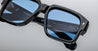 Jacques Marie Mage DONATO - SHADOW (JMMDON-26) are squared racer sunglasses made in Japan, part of the Valentino Rossi for JMM Collection and inspired by the 'San Donato turn' of the Mugello Circuit. They feature black 10mm cured cellulose acetate frame with rounded angles and winged fronts, custom double laminated acetate temples, sterling silver signature arrowhead front pins, exposed 'Barbers' wirecore, Valentino Rossi's signature 'SoleLuna' crest on temple tips, and blue 6 base CR39 lens with back-side anti-reflective treatment and 100% UV protection.