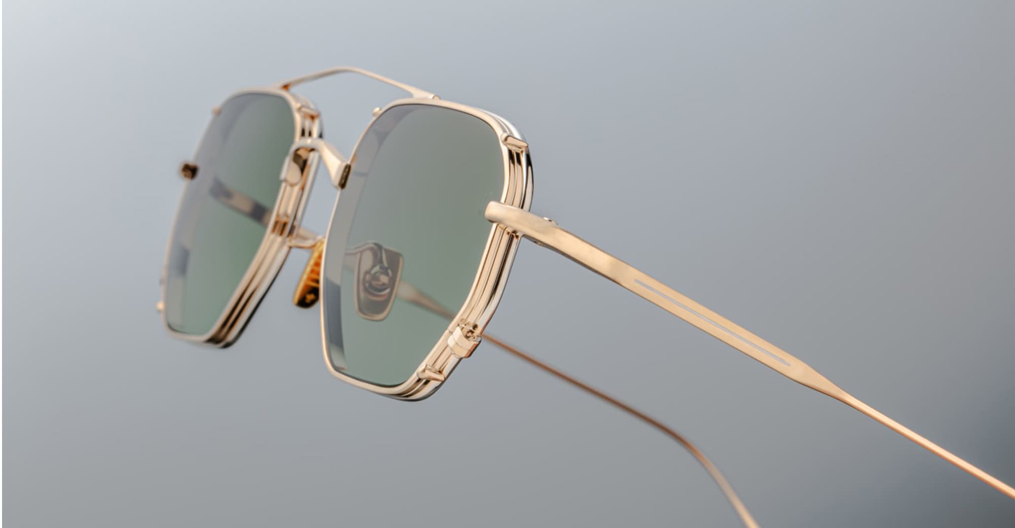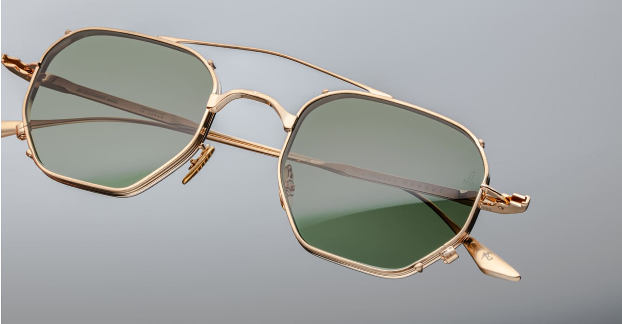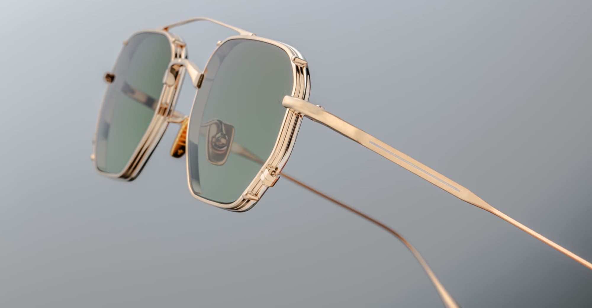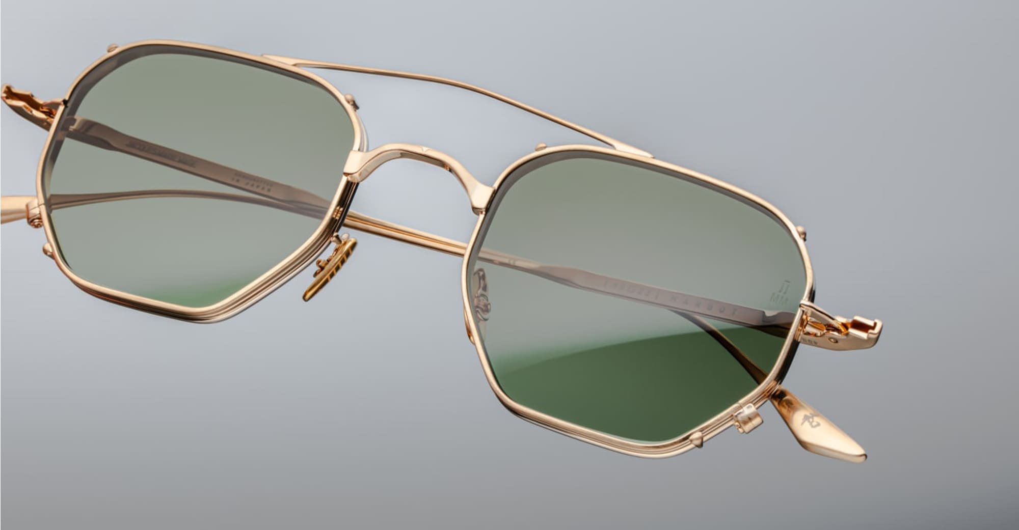 Jacques Marie Mage MARBOT - MUSKET (JMMMA-12M) are octagonal sunglasses made in Japan, part of the Titanium Series. They feature well-balanced, unisex octagonal lens shape and double-wire rim, light gold beta titanium structure, silver back eye-rim, hidden hinge, custom nose pads with logo and engravings, 4 base CR39 lens with backside anti-reflective treatment and 100% UV protection.