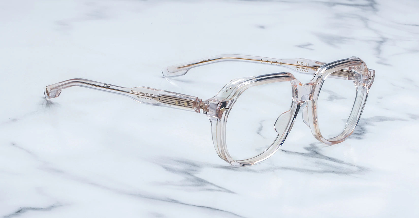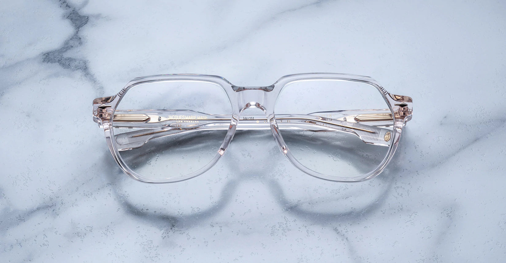 - Material: 10mm block polished acetate frame, custom double laminated acetate temples feat. precious metal