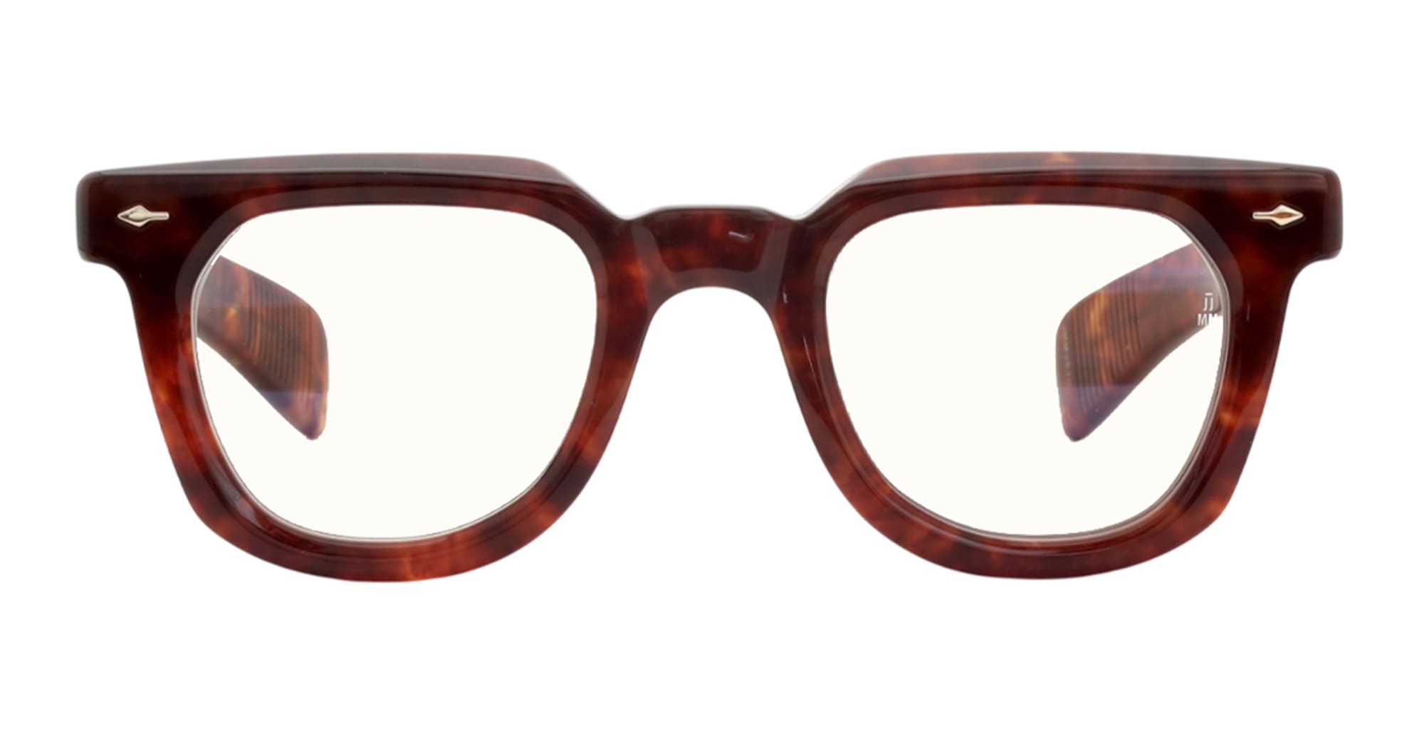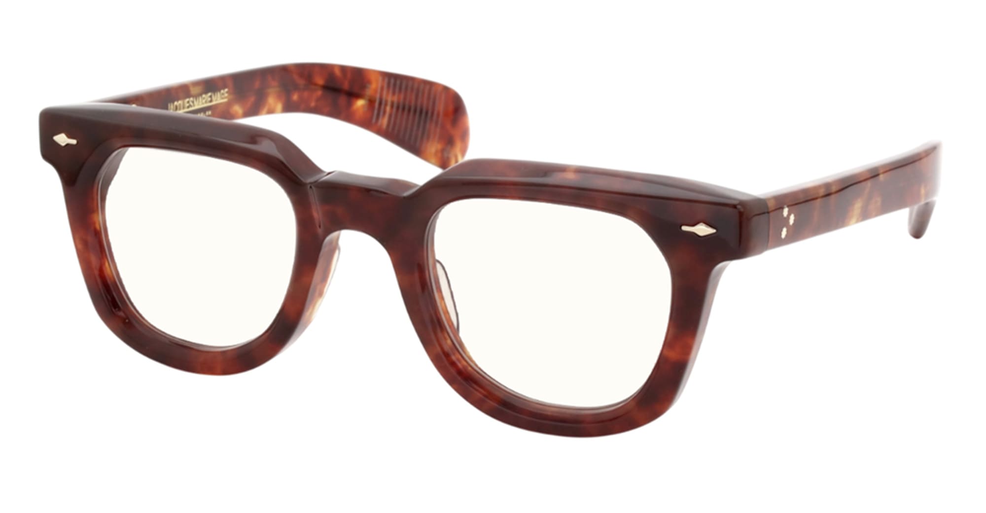 Jacques Marie Mage VENDOME - BRECCIA RX (JMMVERX-7U) are classic Wellington-shaped eyeglasses with bevel cuts and paddle temples, inspired by the late French classicism of Place Vendôme. They feature tortoise 10mm cured cellulose acetate frame, double laminated acetate temples, gold signature arrowhead front pins, hidden wirecore, tension-secured custom 7 barrel hinge..