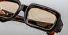 Jacques Marie Mage VERA - AGAR (JMMVR-6D) are bold rectangular wrap-around sunglasses with beveled lenses. They feature tortoise 8mm cured acetate frame, custom double laminated temples with precious metal hardware, tension-secured custom 7 barrel hinge, exposed dark gold gaunlet wirecore, tension-secured custom 7 barrel hinge, yellow 6 base CR39 lens with backside anti-reflective treatment and 100% UV protection.