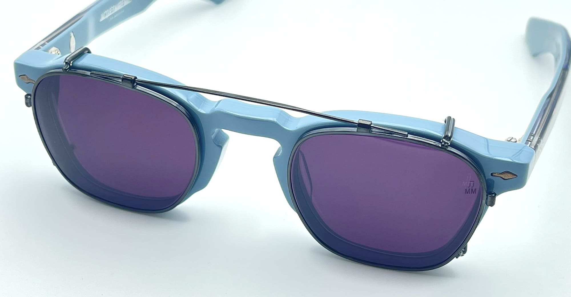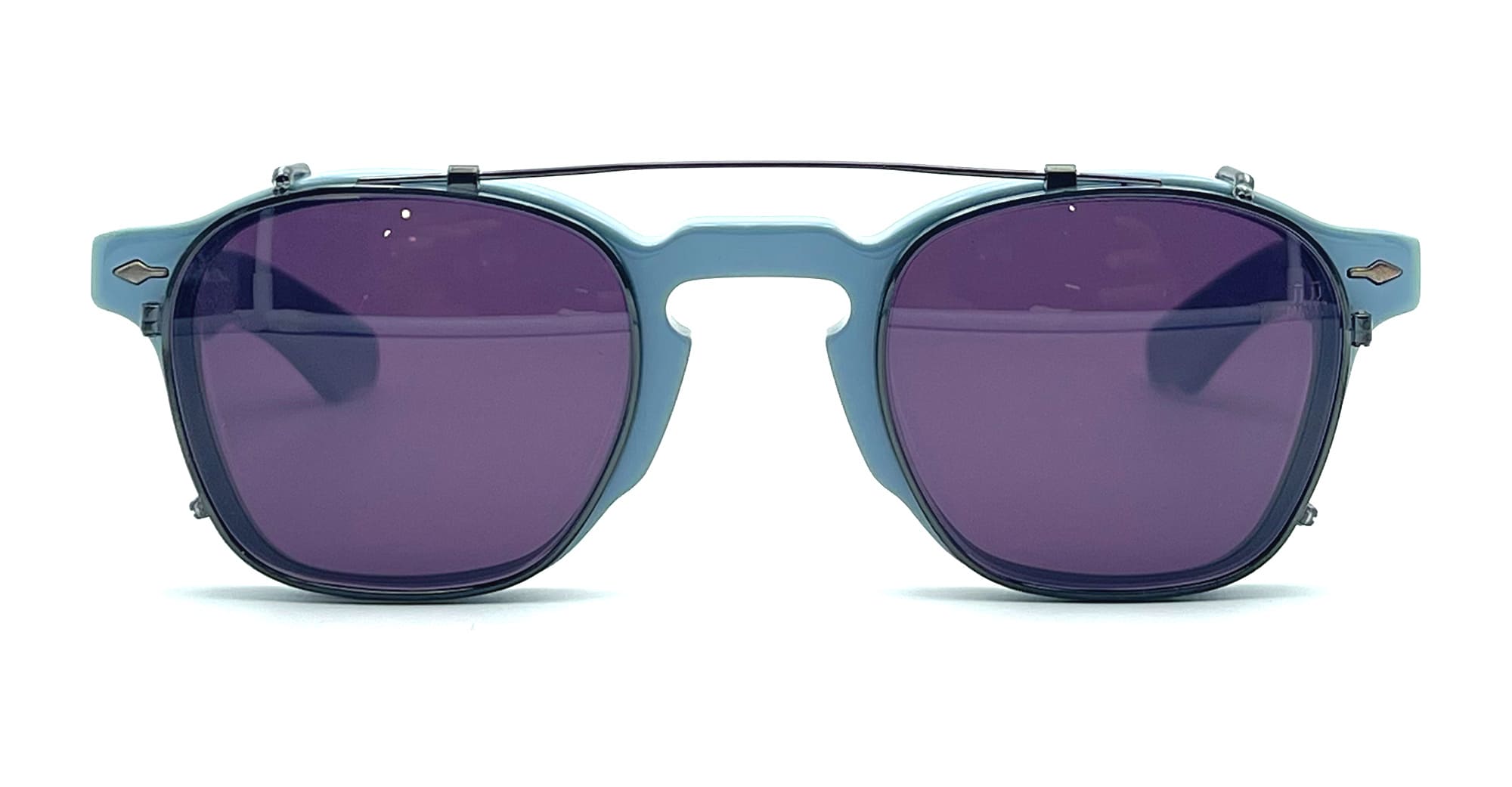 Jacques Marie Mage ZEPHIRIN 47 CLIP-ON - BLACK (JMMZPX-24) are squared clip-on lens made in Japan, designed to add shades to the JMM Zephirin eyeglasses. They feature black titanium construction, 6 base CR39 lens with anti-reflective treatment and 100% UV protection.