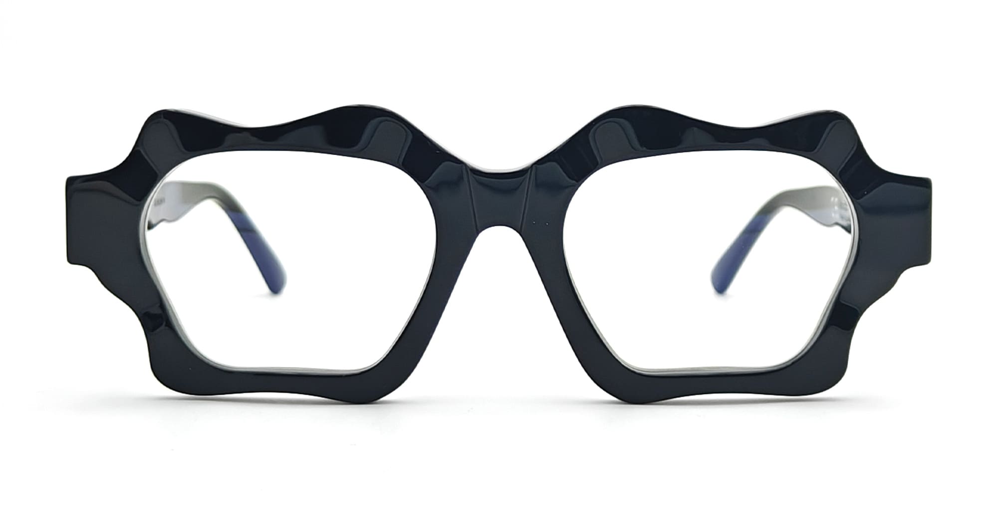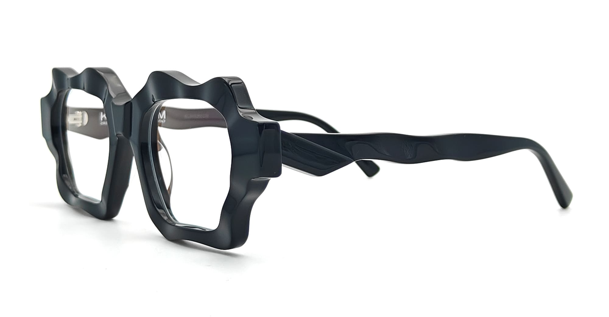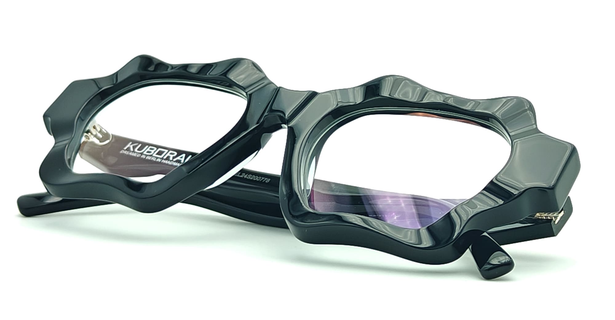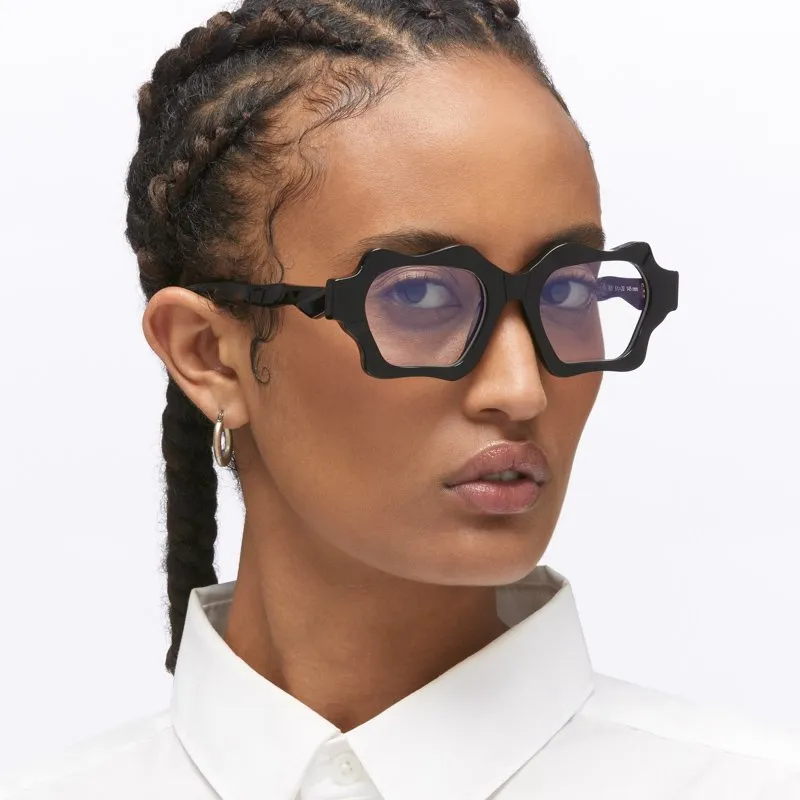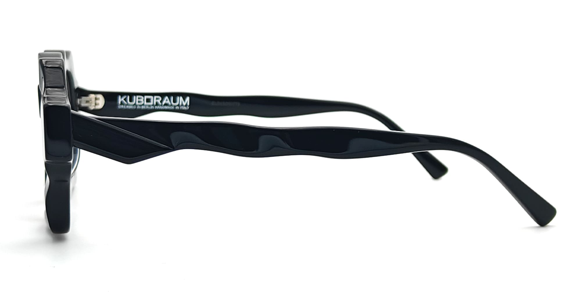 Kuboraum MASK G6 - BLACK SHINE RX (KRO0G6BS000000OP) are elegant rectangular eyeglasses with irregular edges made in Italy. They feature black Mazzucchelli acetate frame, sculpted acetate temples.
