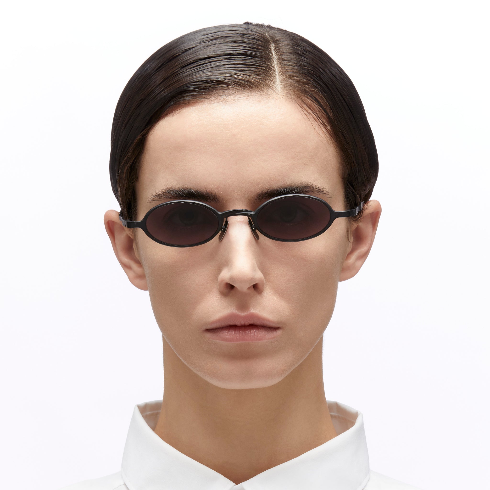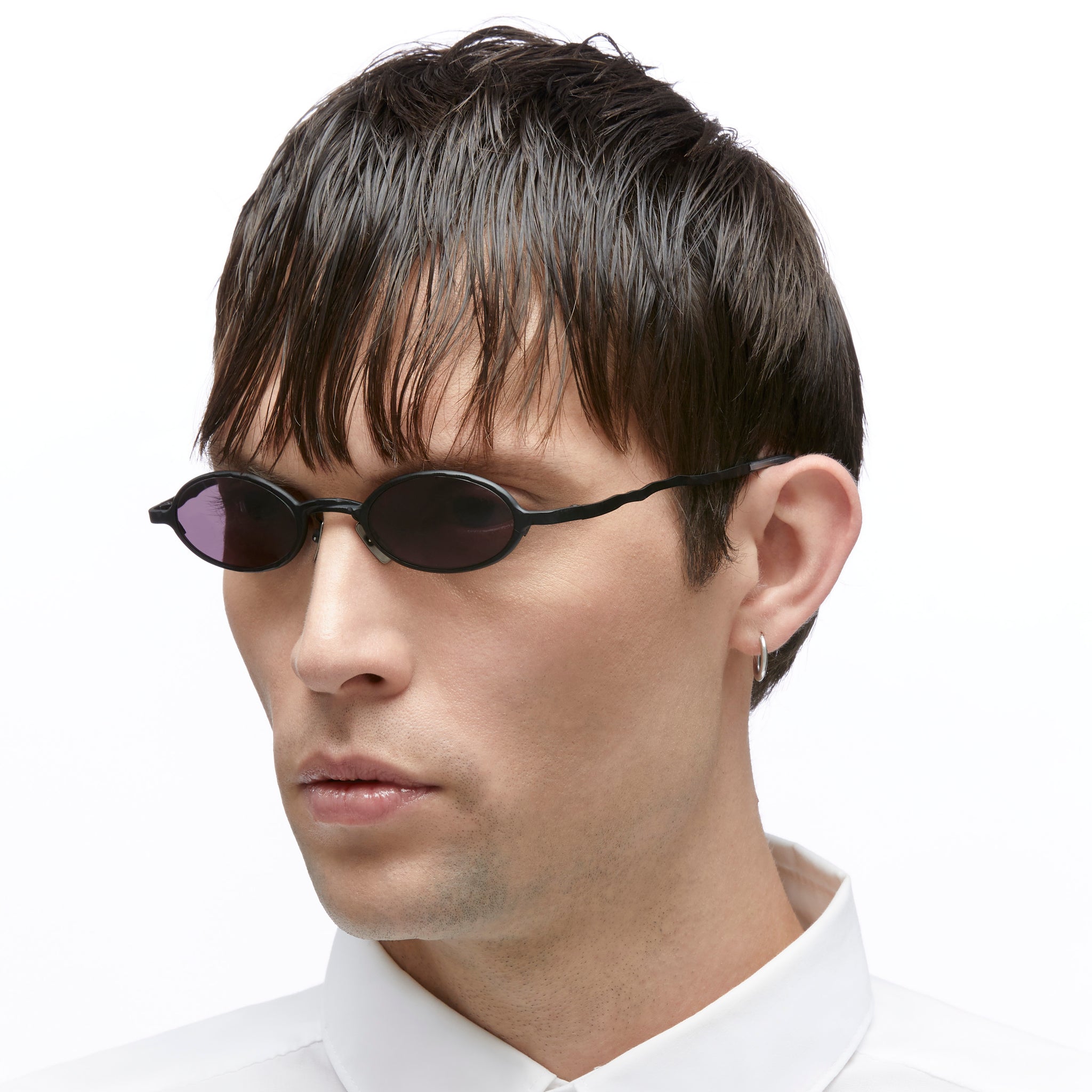 Kuboraum MASK Z24 - BLACK (KRSZ24BB0000002Y) are modern oval sunglasses made in Italy. They feature black metal structure with hand-finish look, double bridge, metal temples with acetate temple tips, custom nose pads, and dark grey lens with 100% UV protection.