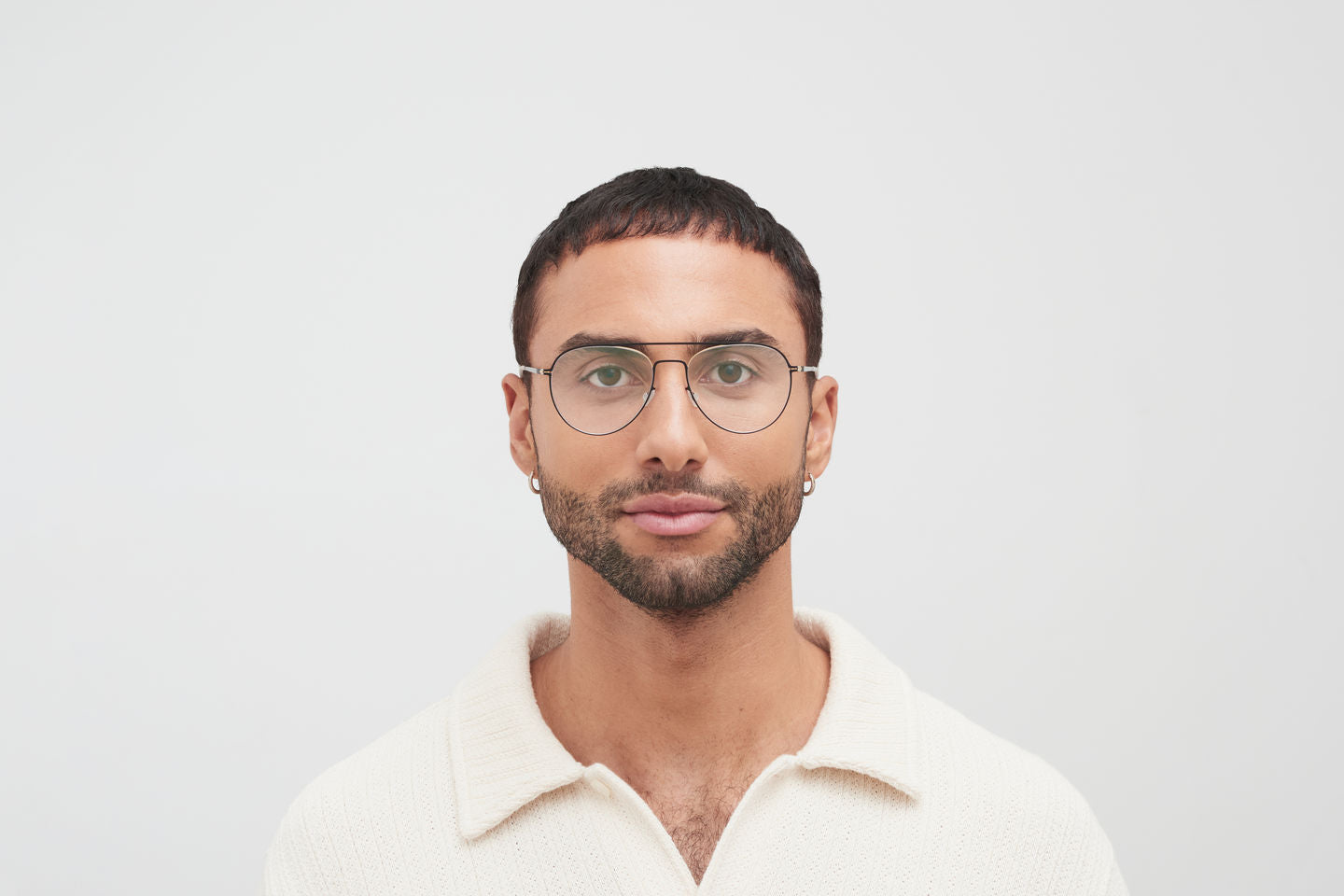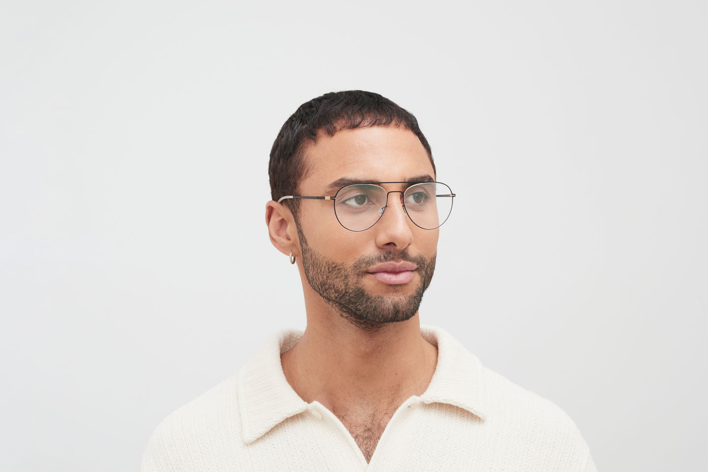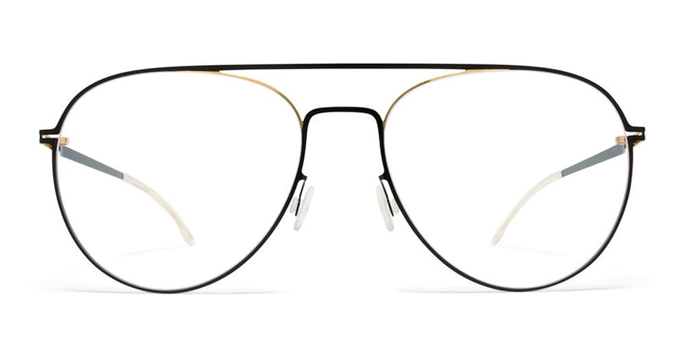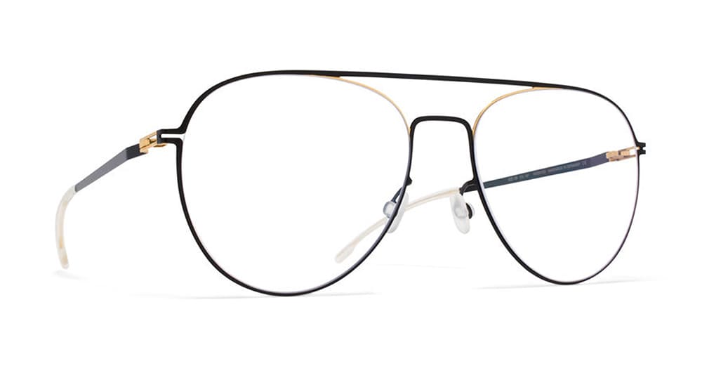 Mykita EERO - GOLD / JET BLACK RX (10015562) are modern aviator eyeglasses made in Germany, part of the Mykita Lite Colletion. They feature lightweight black and gold stainless steel structure, patented spiral hinge system, silicone nose pads and temple tips.