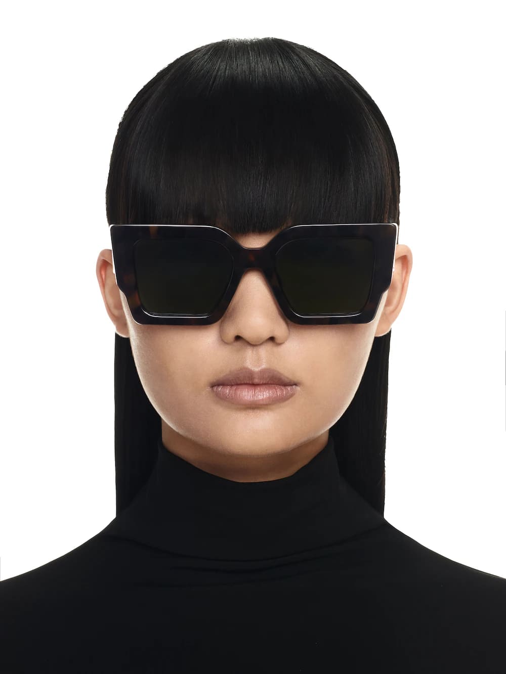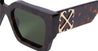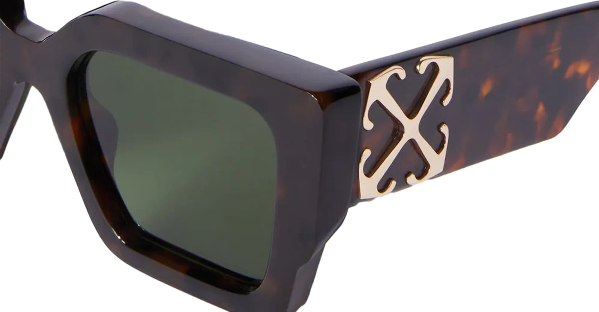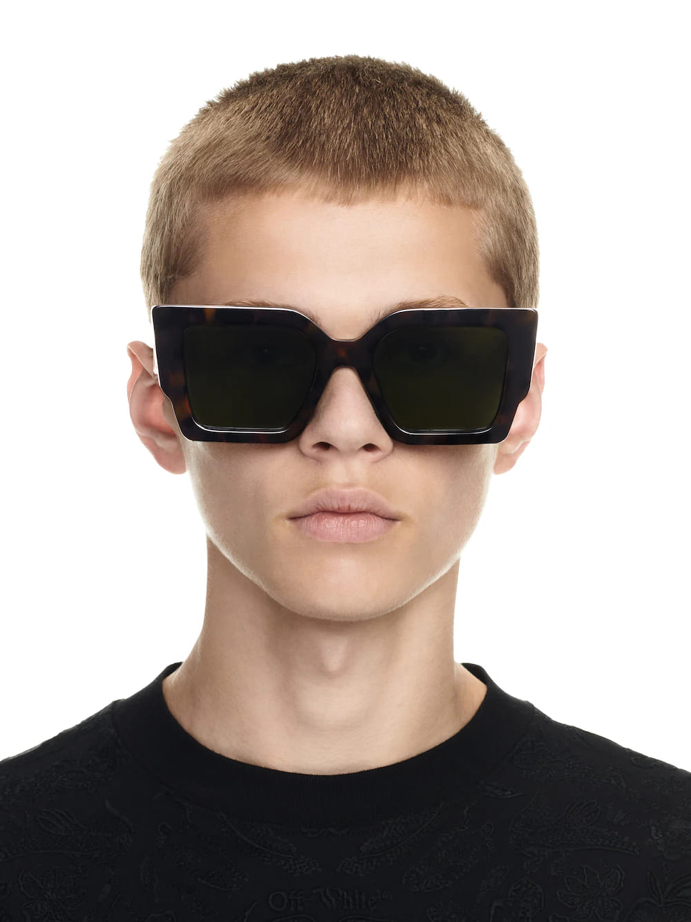 OFF-WHITE CATALINA - BROWN / GREEN (OERI128S24PLA0016055) are squared architectural sunglasses, an iconic Off-White model. They feature brown acetate frame, ultra-thick temples with signature metal arrow logo, and dark grey lens with 100% UV protection.